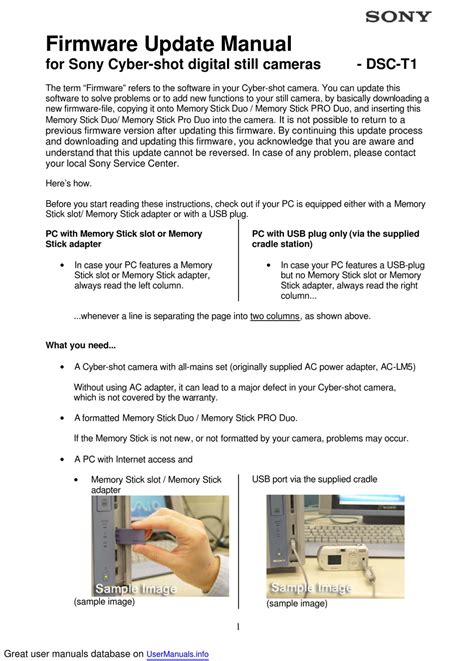 Read Firmware Update Manual For Sony Cyber-shot Digital Still PDF Nook Open Library